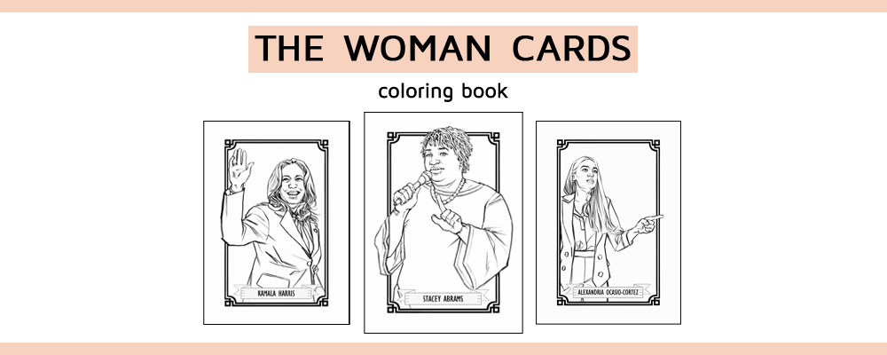 We've compiled thirty illustrations from our feminist playing card decks + three NEW pages (ft. Stacey Abrams, Vice President-elect Kamala Harris, and AOC) for our first-ever coloring book! Print at home and fill in the pages and learn about incredible women who changed the world, even though the deck was stacked against them.